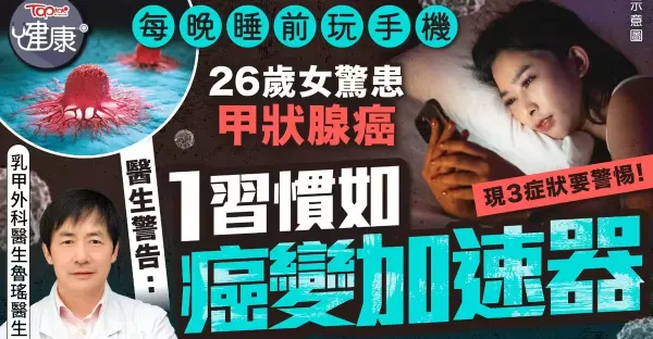 26歲OL每晚通宵玩手機 驚患甲狀腺癌擴散淋巴 醫生揭一習慣淪「癌變加速器」