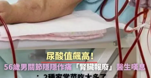 尿酸值飆高!!56歲男關節隱隱作痛「腎臟報廢」醫生嘆息:2種家常菜吃太多了