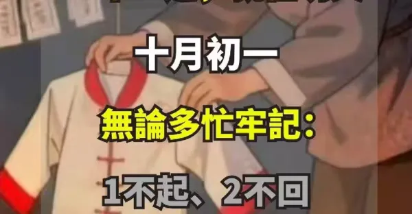 60年一遇,就在明天農曆十月初一,無論多忙牢記:1不起、2不回、3不坐、4要吃!
